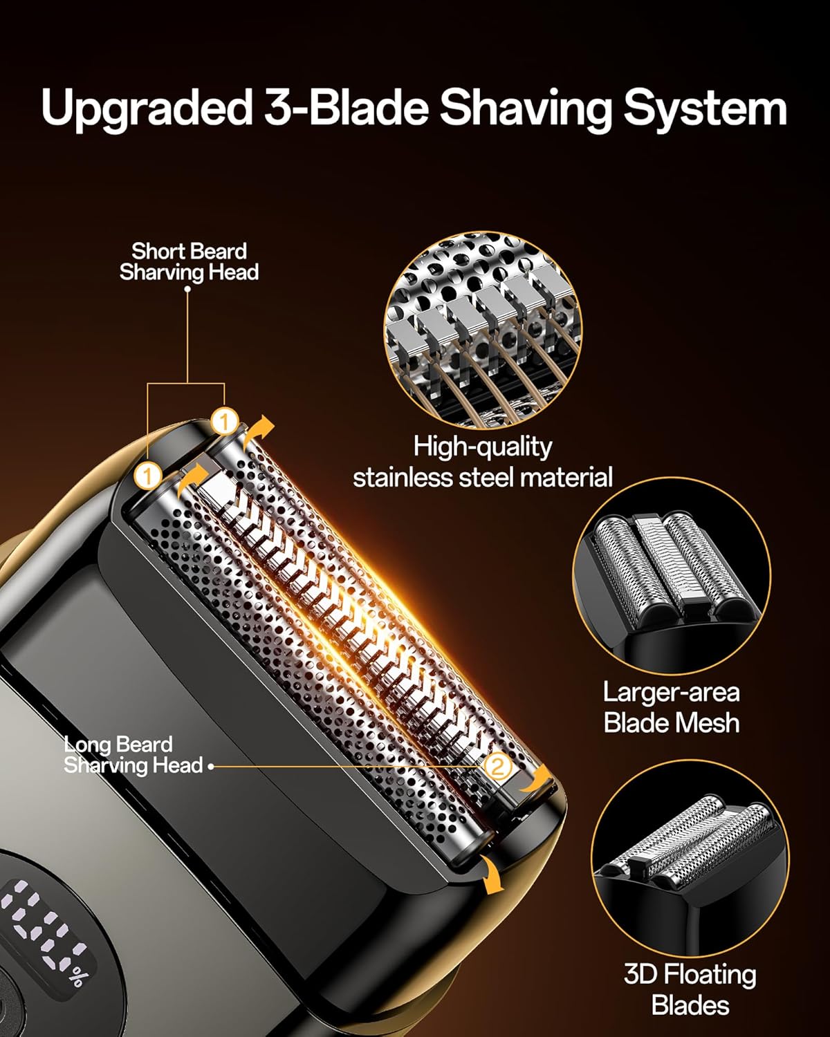 A fully flexible 360° floating head that follows every curve for a complete shave.
